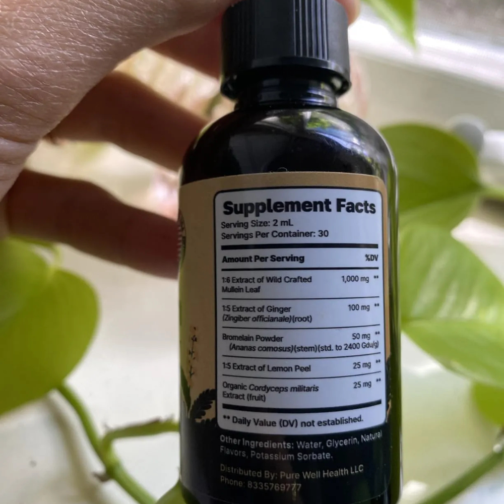 This blend uses a concentrated liquid extract of mullein leaf, paired with supportive botanicals traditionally used to help loosen mucus.